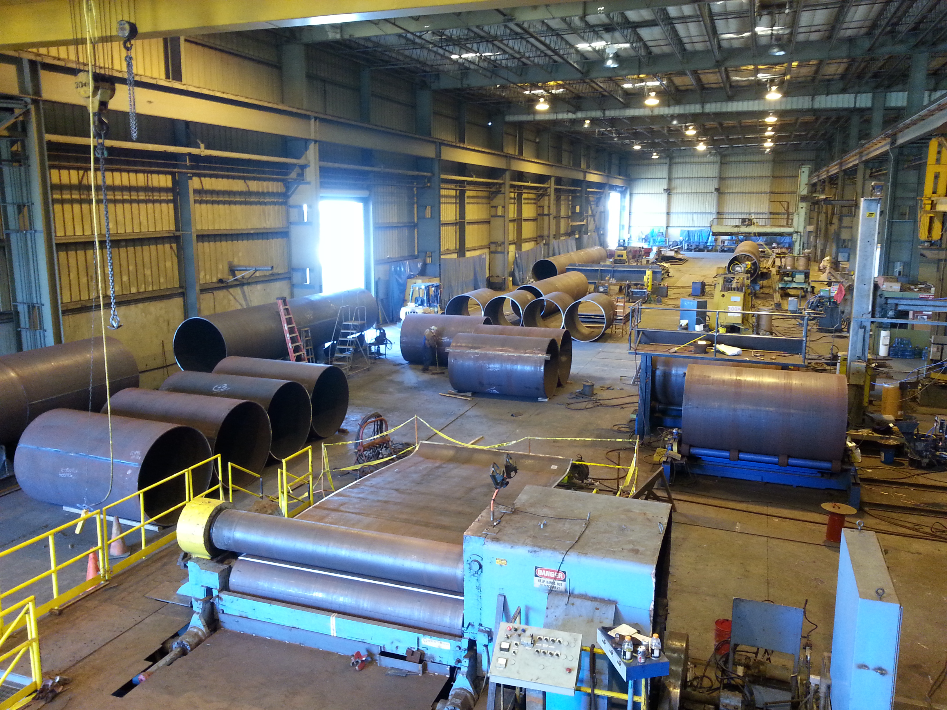 Trans Bay Steel Corp. performs high quality steel fabricating to close tolerances as an AISC certified Shop. Providing heavy rolling, forming, machining, burning, welding, fabricated and structural products for the petroleum, marine, offshore, bridge and construction industries. Large diameter thick walled (8”x10’A36, 4”x10’ HY-80) steel plate is formed on our rolls, medium carbon steel thru higher yield grades and alloys. All welding certified to AWS and AISC standards. Fabricating steel beam and plate for all heavy industry applications. Trans Bay Steel Fabrication Facility |